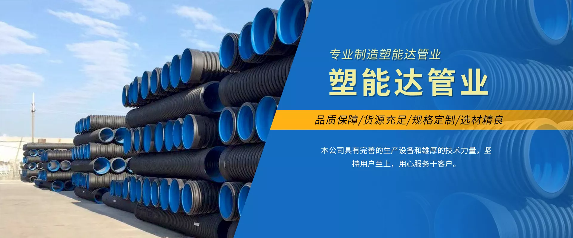 福建省塑能达管业有限公司,主要经营的产品为:HDPE双壁波纹管、PE给排水管、钢带管、pvc电力管、克拉管、缠绕管、检查井、七孔梅花管等等。